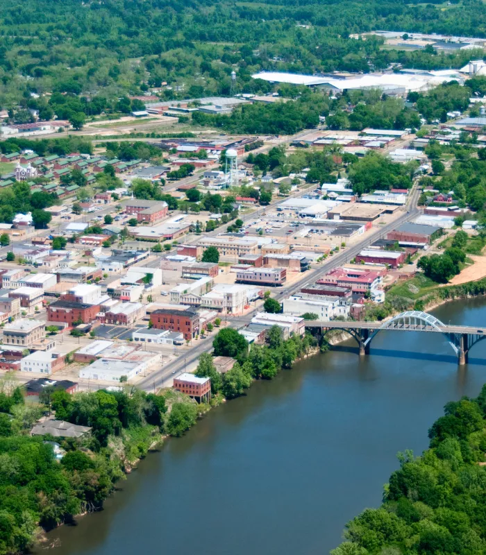 Lanett offers beautiful views along the Chattahoochee River but has been economically stagnant for years. The decline in textile industries, once the backbone of its economy, has left many buildings and lots vacant, contributing to a deteriorated urban landscape. This decline impacts the property values and discourages new investments.